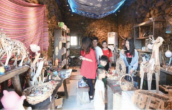 仙人井景区航拍 青山、碧海、古石厝、环岛路……这些都是流水镇的关键词,对于这里的自然风光,怕是难以用一个“美”字能够尽述。流水镇位于平潭东北隅突出部,东濒台湾海峡,海岸线约31公里。它坐落于山海之间,既带着山风的优柔,又带着海洋的狂野,每一处风景都有着独特的韵味,令多少游人魂牵梦萦。 说起流水镇,最耳熟能详的当属君山。作为平潭最高点,君山上树木葱茏,峰巅、山腰常有云雾萦绕,岚气弥漫,一片青黛之色。青岚之中,怪岩若隐若现,颇有蓬莱仙境的风韵。若是天气适宜,君山上还会出现“君山插云”的奇景。 和君山齐名的是位于流水镇东海村的王爷山南麓的东海仙境。景区内有仙人井、仙人洞、仙人谷、仙人峰、仙人柱等景点,这些天然形成的海蚀地貌极其宏伟,每年都吸引了众多游客和摄影爱好者纷至沓来。 除此之外,流水镇还坐拥着一段美景长廊——环岛路君山段。这段路沿线串联了流水镇谢厝村、山门前村、渔屿村、君山村、磹水村等地,途中可以看到广阔的海景,水天一色,煞是迷人,因此被誉为“最美环岛路”。天晴时,驰车在这段路上,感觉十分畅快,沿途还能看到许多游客在此驻足观景。这样美丽的环岛路君山段自然也就成为了当前最热门的婚纱照拍摄地之一,很多年轻人在这里留下了甜蜜时光。 流水镇坐拥佳境,风光秀丽,应接不暇的美景让许多游客心向往之,“流水镇可玩的地方有很多,很适合住上两天,好好感受一下山海相嵌、海天交融的美景。”游客徐志慧说。 有特色 古旧石厝改造奇 除了旖旎的自然风光外,流水镇格外吸引人的还有古色古香的石头厝。石头厝是平潭独特的旅游资源和文化品牌,既沉淀着深厚的海岛民俗文化,又具有很高的建筑艺术价值,被《国家地理》杂志形容为“彩色城堡”,是平潭的“真宝贝”。细数北港村、君山村、磹水村……这些村落正因独特的石头厝群落而被人所熟知。 站在北港村村口俯视村落,可见村内布满层层叠叠的石头厝,成片的石厝群落与蓝天、碧海、白云和谐地融合成一幅美丽的画卷。在过去,北港村只是名不见经传的小渔村,全村400多户,绝大多数青壮年外出打工,曾一度陷入“空心村”的困境,不少古厝破败不堪,几近萧条。近年来,这个小渔村却声名鹊起,成为平潭的“网红打卡地”,这离不开台湾青年团队的进驻,将破败的石头厝进行整体改造与度假化利用。 三年前,一对台湾夫妻林智远和许琳宜来到北港村,一眼就相中了这块宝地,并签下了11栋石头厝。本着修旧如旧的改造理念,林智远团队在装饰设计上引入东岸经验,利用旧物营造复古怀旧的风格,尽可能地留住了平潭石头厝的古早味。老旧的桌椅、废弃的渔网、“远道而来”的漂流木……一项项创意被装进这些石头厝之中。 随着石头厝这一宝贝被认可,越来越多两岸创客加入到民宿改造的队伍中,打造出浓浓岚台味的民宿风格,让平潭石头厝声名远播,而这些石厝群落吸引着越来越多的来自五湖四海的游客慕名前来,体验一番石头厝民居。北港村党支部书记陈松柏说,去年北港共接待游客30多万人次,今年预计接待游客人数可以翻番。 有文创 岚台元素挖掘深