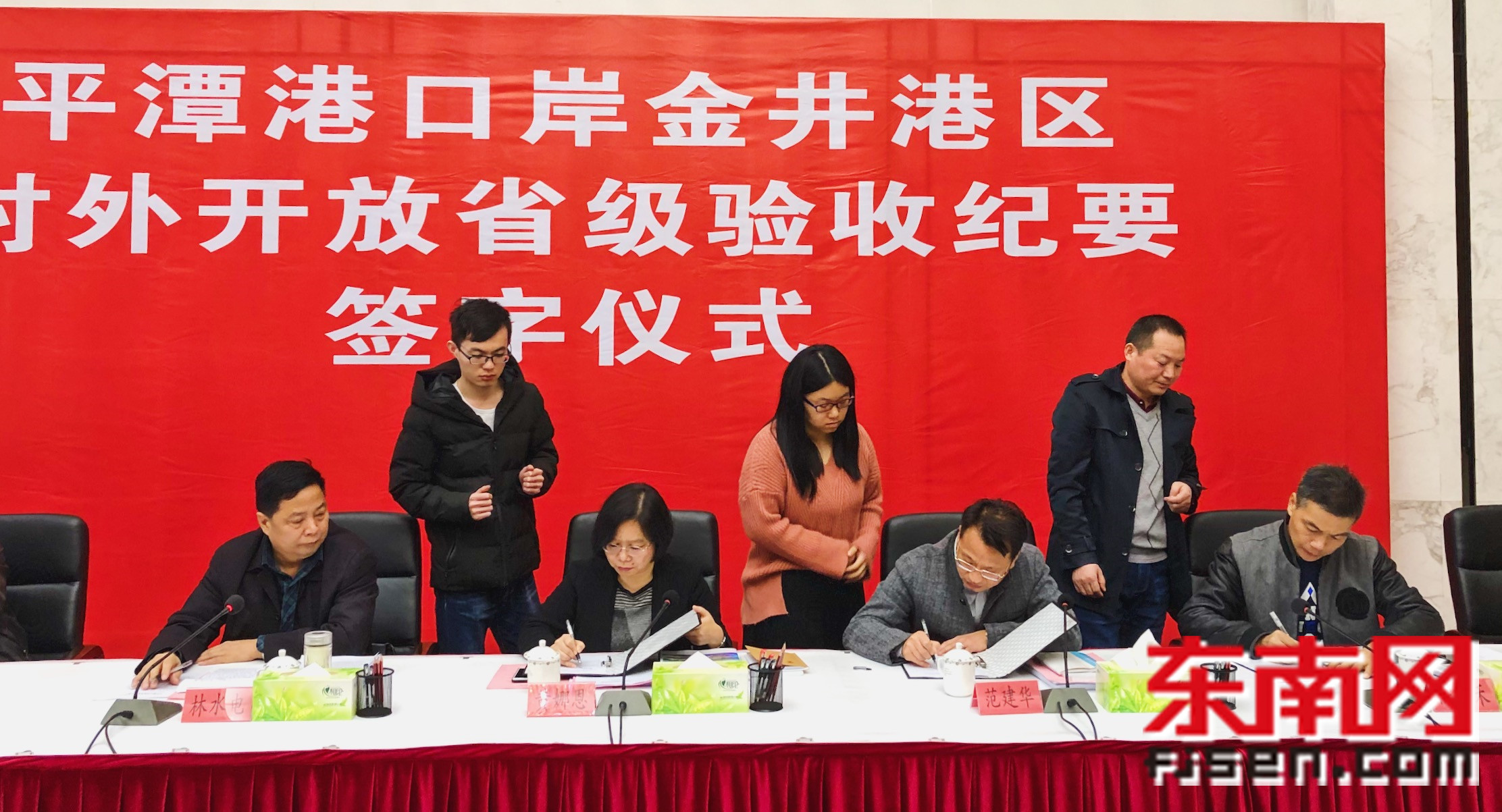 验收签字 金井港区3号泊位为15万GT国际邮轮泊位,目前按照5万吨级多用途泊位标准配置工艺设备,岸线长度384米,年设计吞吐量125.4万吨。4号、5号泊位均为5万吨级多用途泊位,岸线长度661米,年设计通过能力284.8万吨。同时,该港区还建有仓储物流仓库,口岸服务大楼、通关查验设施、业务用房、水电通讯等配套设施。 下一步,平潭将落实省级验收组意见,继续完善该港区设施建设,争取早日实现对外开放国家级验收。 |