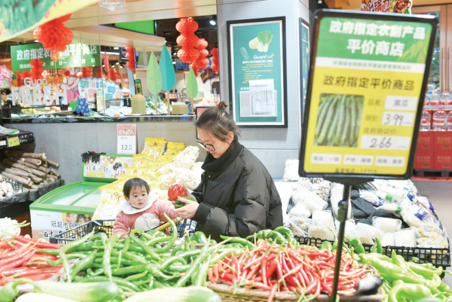 市民选购蔬菜 “‘菜篮子’又能省钱了!”新春佳节将至,为保障全区群众买到物美价廉的平价蔬菜和平价猪肉,1月29日至2月24日,实验区启动春节期间农副产品平价销售机制。 1月30日,在新集市·华悦超市生鲜区,前来采购的市民络绎不绝。“我们多买了些大白菜、土豆,都是日常经常买、经常吃的蔬菜,价格实惠。”市民庄先生点赞道。 新集市·华悦超市门店负责人吴福章告诉记者,春节临近,市民采购需求将大幅提升,门店已经做好充足准备,备足货源,保证市民随时到店都能买到新鲜的平价产品。 在永业生活超市大卫城店,“政府指定农副产品平价商店”牌子悬挂在显眼位置,管理员张长华正在巡逻卖场,他介绍,自从实验区启动平价销售机制,蔬菜销售量较平常增长了一倍。“特别像胡萝卜、土豆、圆白菜、黄瓜这一类易储存的蔬菜销售量涨幅明显。”