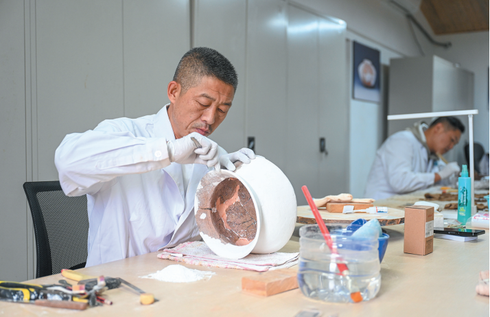 专家开展修复工作 一片碎陶,沉淀七千年潮汐变迁;一道纹饰,勾勒跨海洋文明轨迹。 近日,在平潭国际南岛语族研究院的文物修复室,考古技师刘军祥俯身在工作台前,手持软毛刷,轻柔地清理一件刚刚修复完成的夹砂陶罐。这件由西营遗址出土陶片拼接而成的文物,表面细密的压印纹路在清理后清晰浮现,仿佛正在诉说远古的故事。 “陶片取自西营遗址,我们采用整体提取法,将含陶片的土块运回室内,再逐层清理、拼对、加固。”刘军祥介绍,从残片到成器,需经历10天至15天的精细作业。这件陶罐的“重生”,不仅是技术的复原,更是一段文明记忆的复苏——它见证了南岛语族先民在平潭的生存轨迹,为追溯其起源与扩散提供了关键物证。 沿着苏平片区的海岸线行走,壳丘头遗址群散布在数个山丘之上,是目前福建沿海地区发现最早的新石器时代贝丘遗址之一,成功入选2023年度全国十大考古新发现。这里已发现的新石器时代遗址包括西营、壳丘头、东花丘、龟山等,时间跨度从距今7500年持续至3000年,构建起东南沿海史前文化发展的完整序列,成为解读东南沿海史前文化的重要密码。 “陶片上的贝齿纹、戳印纹,与台湾大坌坑、金门富国墩遗址的文物纹饰相比,两者高度相似。”壳丘头遗址博物馆讲解员肖可欣向记者介绍,这些共性印证了海峡两岸文化同根同源的紧密联系。而西营遗址出土的7300年前人骨,经古DNA分析显示,其族群与我国南方、东南亚存在亲缘遗传,使平潭成为国际学界探索南岛语族起源的关键区域。 党的二十届四中全会提出,大力繁荣文化事业,加快发展文化产业,提升中华文明传播力影响力。发掘历史、传承文明是考古工作的神圣使命。近年来,平潭考古工作成果丰硕。作为“考古中国”重大项目,“南岛语族起源与扩散研究”的核心区域,壳丘头遗址群的发现,改写了民众对中国东南沿海史前文化的认知,也成为展示中华文明多元一体格局的重要窗口。如今,平潭厚植文化底蕴,促进考古发现成果转化,推动“考古+旅游”融合发展——壳丘头遗址博物馆内,虚拟现实技术重现先民航海场景;坛南湾的MR项目以蓝眼泪为媒,将南岛语族元素融入夜色;以陶杯为原型的文创咖啡杯、贝齿纹帆布包等产品,让文物走入寻常百姓家。 一枚陶片,见证了南岛语族先民向海而生的勇气,也见证着如今平潭推动考古事业创新发展的坚定步伐。“我们将以党的二十届四中全会精神为指引,以守正创新的理念加强文物保护与活化利用,深入挖掘、整理、阐释文物内涵,为扎实推进中国式现代化平潭实践贡献文化力量。”实验区旅文局党组成员、旅游文化服务中心副主任李晓哲说。 |