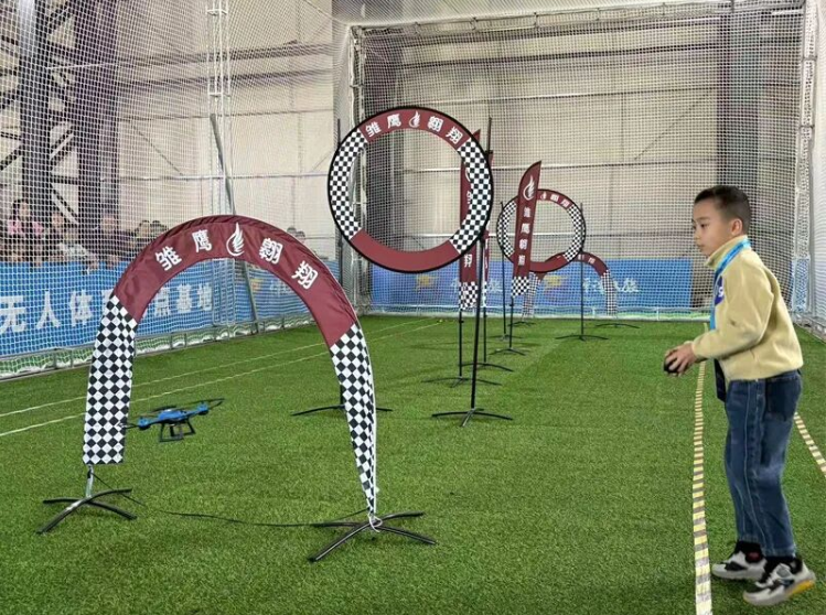 “以赛代训”育人才“梯度研发”筑根基 “赛事是学生阶段学习的‘期中考试’。”于教科技俱乐部课程老师杨家雯介绍,此次俱乐部有78名学生参赛,仅穿越机项目就有20余人,教练更是同台竞技。“‘以赛代训’能检验教学成果、提升飞行技术,锻炼学生的综合能力,从动手动脑到时间管理能力,从平衡兴趣与学业到建立自信,不少学员在学校成绩稳居中上。”雏鹰翱翔赛事也是该俱乐部打响知名度、深耕青少年科技教育的“起点赛事”。 “课委会始终以服务青少年为核心,从项目研发端为赛事保驾护航。”赛事课委会负责人杜宏博介绍,通过“梯度化、场景化”的赛项创新,以具象化的竞技场景为青少年筑牢航空知识根基、精进无人机操控技能,以低空经济产业实践为纽带,引导他们跳出“兴趣体验”的浅层认知,构建专业认知、明晰成长路径。