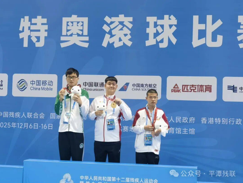 贺 电 全国第十二届残运会暨第九届特奥会福建省代表团: 欣闻我区运动员高凯在全国第十二届残运会盲人足球团体比赛中夺得银牌,俞朝强在第九届特奥会滚球男子单打16-21岁组别比赛中夺得金牌,林健辉、俞朝强在第九届特奥会滚球男子双打22-29岁组别比赛中夺得银牌,林健辉在第九届特奥会滚球男子单打22-29岁组别比赛中夺得铜牌,俞雪婷在全国第十二届残运会举重女子41公斤级最佳重量第四名,为福建省赢得荣誉,为实验区增添光彩。在此,平潭综合实验区党工委、管委会向你们及高凯、俞朝强、林健辉、俞雪婷同志表示热烈祝贺和亲切的问候! 衷心祝愿我省残疾人体育健儿继续发扬奋勇拼搏、敢为人先的开拓创新精神,为我省残疾人体育事业续写新的辉煌。 平潭综合实验区党工委 平潭综合实验区管委会 2025年12月15日 15日,全国第十二届残疾人运动会暨第九届特殊奥林匹克运动会在深圳落下帷幕。连日来,平潭健儿顽强拼搏、表现出色,在多个项目上斩获佳绩,为福建省代表团赢得了荣誉。 来自平潭特殊教育学校的运动员俞朝强、林健辉分别参加了特奥滚球项目三个小项的角逐。最终,俞朝强荣获男子单打16-21岁M14组金牌,林健辉获得男子单打22-29岁M21组铜牌,他们还一同参赛获得了男子双打22-29岁M09组银牌。