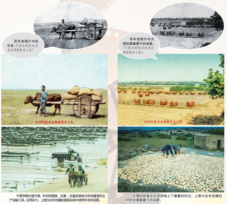 照片从何而来?这背后有一段跨洋寻找的故事。2014年,一则新闻引起了陈星的注意。福建省炎黄文化研究会理事蒋滨建收到一组来自美国的老照片,其中三张是平潭影像。这则消息让陈星这个土生土长的平潭人坐不住了。“照片是谁拍的?”“他们为什么来平潭?”“会不会还有更多照片?”一连串疑问推开了陈星长达数年的寻找之路。 当时,陈星正担任平潭一中教务主任。一次整理校史资料时,他在《平潭县志》中发现平潭一中前身之一的“开宗小学”,其首任校长力亨利是位擅长摄影的美国人。这个发现让他心头一动——之前那三张外国人拍摄的老照片,会不会就与这段历史有关? 顺着这条线索,他开始多方联络,几经周折找到了几位毕业于平潭一中、如今在美国的校友。在他们的热心协助下,经过查找,16张拍摄于上世纪20至30年代的黑白老照片通过扫描、邮件发回平潭。这些照片真实定格了当年平潭的城乡风貌、习俗与日常生活等场景。 取得这些珍贵影像的电子资料后,修复成为新的挑战。陈星自学AI修复技术,并与身在美国的校友共同反复调试软件,有时需综合运用多个工具,一张照片就要处理数日。他还查阅史料,考证当时服饰与建筑的色彩,力求还原历史本貌。 番薯如何成为平潭人的主粮并形成独特的番薯文化?平潭线面制作的复杂工艺有何意义?早年的渔港码头又怎样维系着海岛对外的联系……讲座中,陈星结合《平潭县志》等资料,为观众解读影像背后的故事。