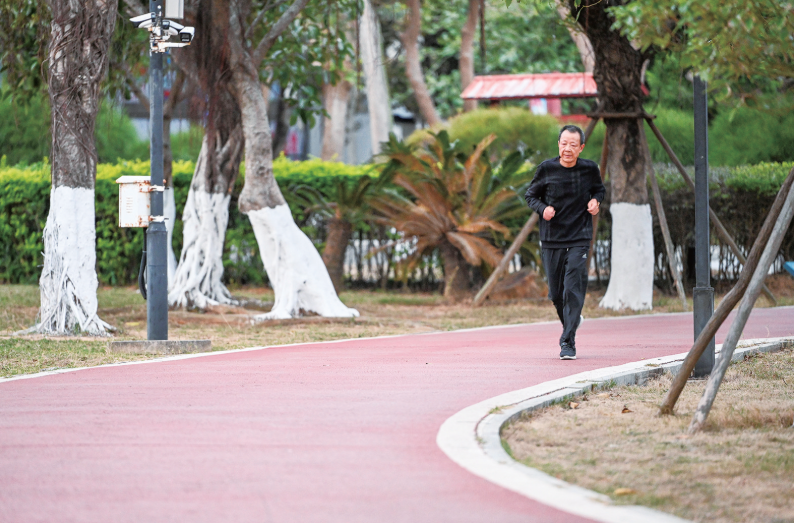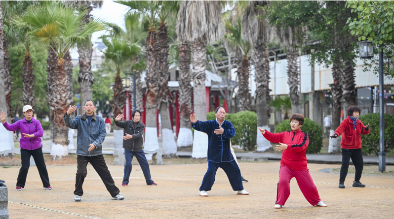 打太极 晨光初染,平潭的公园已悄然“苏醒”。老人们在此或缓步慢跑,或舒展筋骨。告别晨练的热闹,山海佳苑社区的老年学堂里,老人们先跟着指导老师做起了眼保健操,轻柔地按压穴位,舒缓眼部疲劳,随后端坐在书桌前学写字,在练习纸上一笔一画认真临摹。