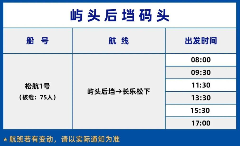 25日,平潭旅游客运公司发布关于“岚屿渡6号”客渡船停运的通知,因“岚屿渡6号”客渡船计划进行换证检验(坞修),自2025年12月29日起停运,具体复航运营时间另行通知。详情如下: 尊敬的各位旅客: 因我司“岚屿渡6号”客渡船计划进行换证检验(坞修),自2025年12月29日起停运,具体复航运营时间另行通知。停运期间,长乐松下码头前往屿头离岛渡运航班由“松航1号”客渡船承担运行任务,请大家相互转告,由此给您带来的不便,敬请谅解!服务咨询电话:0591-88887929或咨询市民热线12345。 航班时间临时调整如下: