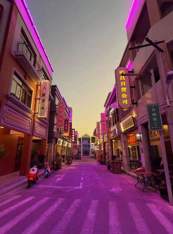 夜幕降临:切换烟火狂欢模式,解锁海岛夜活力 当华灯初上,龙山俚便一键切换至热闹鲜活的烟火模式!复古灯牌与霓虹彩灯次第亮起,暖黄的光晕包裹着骑楼街巷,与白日的静谧复古形成鲜明对比,将历史的厚重与当下的活力完美融合。九亩邸酒馆、AP酒吧、海叮咚大排档、榕树下...这里没有你想不到的美食,台式奶茶的甜香与炭火烧烤的焦香交织,满是地道烟火气。 值得一提的是,龙山俚早已不止是影视打卡地。海客空间内,平潭海洋IP文创、壳丘头遗址主题周边与台湾凤梨酥、金门高粱酒等特色好物一站式购齐,把海峡两岸的风味与浪漫带回家。即将亮相的“八闽书房”搭配24H自习室,更让书香成为这里的别样底色,实现“娱乐+文化”的双重体验。