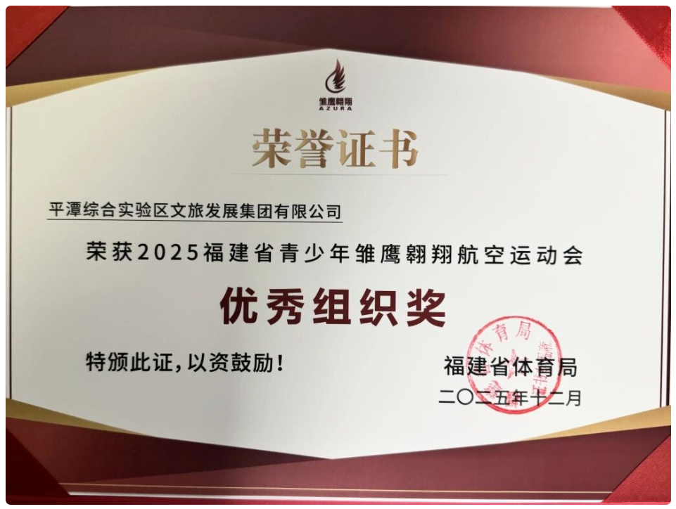 近日,福建省体育局正式公布2025福建省青少年雏鹰翱翔航空运动会评选结果,平潭文旅集团凭借在赛事组织、运行保障和综合服务等方面的突出表现,荣获“2025福建省青少年雏鹰翱翔航空运动会”。 该奖项的获得,标志着平潭在航空运动赛事组织和青少年航空体育发展方面取得了阶段性成果,也充分体现了主管部门对平潭文旅集团专业化办赛能力和综合统筹水平的高度认可。