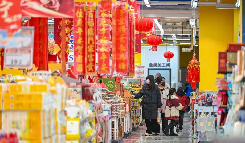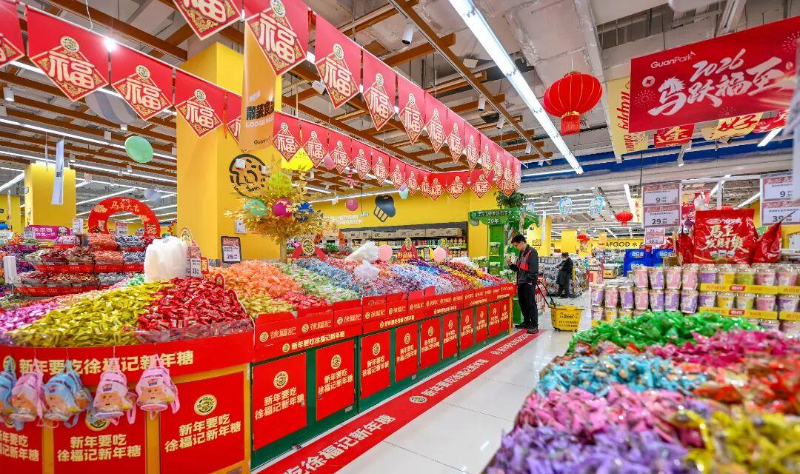 店长李勇军介绍:“今年准备时间充足,备货参考了去年的销售情况,保障春节的商品库存,重点准备了休闲食品和生鲜饮料。”
