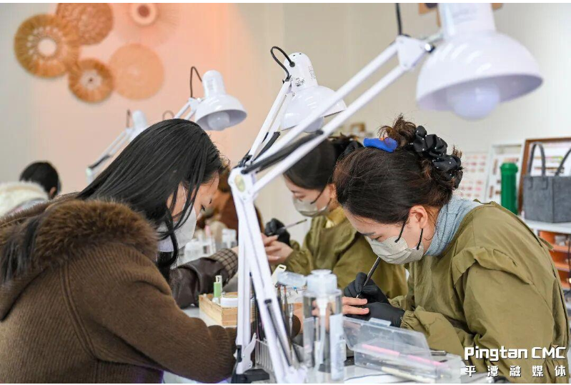 走进吾悦广场的一家美甲店,店内座无虚席。几名年轻女孩低头看着刚做好的红色美甲,不时抬手在灯光下细细打量。店长孙琼一边为顾客打磨甲型,一边介绍:“从今年一月中旬开始,来做新年美甲的人就络绎不绝,放假的大学生是主力军之一。” 正在做美甲的学生高逸格笑着说:“一放假就来做美甲了,选了一款红色的,特别喜欢。”