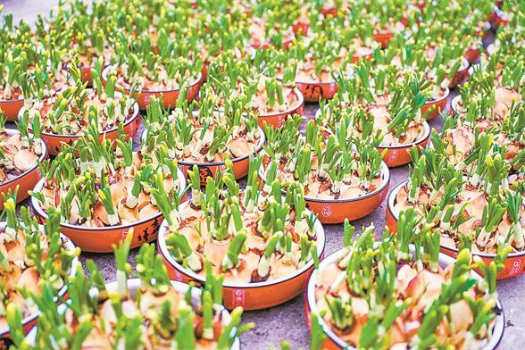 ↑水仙花种球按一定数量进行装盆种植。通讯员 林君斌 摄 核心提示 今日立春,恰逢平潭水仙花上市季。连日来,平潭水仙花科研基地里,近3000盆水仙或含苞待放,或已吐露芬芳,正被陆续打包成精致礼盒,装车运往大江南北。 一抹纯白,几片翠叶,中间一点金黄,平潭水仙花姿态优美、芳香四溢,因而被世人赋予“水仙花王”之美名。作为水仙花重要的原生种源地之一,平潭有着300多年的野生和驯化栽培历史。受海岛立地自然条件影响,这里产出的水仙矮壮、多花、味香,且花期长达20多天,已然成为海岛文化中不可或缺的标志性符号。2013年,平潭水仙花经核准注册为国家地理标志证明商标。 尽管如此,平潭水仙也曾经历市场波折,一度跌入低谷。实验区成立后,出台了《扶持平潭水仙花产业发展实施意见》等一系列政策措施,大力扶持水仙花特色产业发展,逐步探索出了一条以“政府搭台、企业唱戏、产业牵线、市场主导”为特征的高质量发展新路径。2025年,平潭水仙花原生种和商品球的种植面积约550亩。 从泥土里的种球到案头的芬芳,平潭水仙走上逆袭之路,既是产业振兴的缩影,也是海岛文化传承的生动注脚。平潭正持续深耕水仙特色产业,丰富文创、体验等多元业态,打造水仙文化IP,让海岛“凌波仙子”香飘更远、价值更高。近日,记者走进平潭花企、农田、市场,感受冬春之交的这抹独特芬芳。 昔日盛景,陷入低谷 冬日清晨,平潭君山村被薄雾笼罩。花农冯敦元起了个大早,推开房门,一排排已装盆的水仙花映入眼帘,空气中散发着幽幽清香。“看这花球个头饱满,前几天采购商刚收走一批,销路不错。”冯敦元说着蹲下身细细查看,脸上挂着笑容。