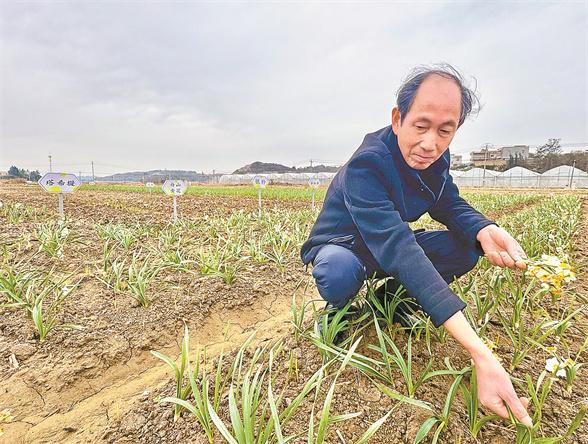 ↑游客在水仙花田里打卡拍照。 通讯员 林君斌 摄 这片基地面积有50多亩,由平潭绿联绿孚水仙花发展有限公司打造,公司“90后”负责人丁丽萍是“花二代”,曾在泉州从事电商业。2023年,父亲丁汶锦离世后,她毅然接过“接力棒”,成了一名新花农。 从泥土到市场,一盆水仙如何香飘千万家?“答案,藏在‘三种三收’的种植模式里。”丁丽萍如数家珍,每年霜降时节种下花球,次年芒种前再把花球刨出储存,如此反复三次,直到第三年种球方才逐渐成长为鳞茎硕大、花苞较多、抗病能力强的优质商品花球。 从“小白”到“行家里手”,丁丽萍在接手公司后,一头扎进花田,日夜钻研水仙花的生长习性。皮肤晒黑了,手上磨出了茧子,但她心里始终记挂着父亲临终前的嘱托:“一定要继续把平潭水仙花种下去!” 此刻,在距离平潭1900多公里之外的北京,丁丽萍正忙着在公司办事处搭建调试直播间设施,紧锣密鼓地筹备新年水仙花销售直播。“临近年关,我们的订单量持续攀升,就连主球周径26厘米的特大水仙花球也受到了不少客商青睐。”电话那头,丁丽萍言语中透露出对市场的信心。 这份底气不无道理。在丁丽萍看来,平潭水仙花重新走进公众视野,离不开当地政府的扶持。“在‘三种三收’的种植模式下,一名工人每天的工钱100多元,再加上养护费用,支出并不低。实验区每年按照每亩1000元的标准给予补助,这大大减轻了我们的负担。”她说。 去年以来,丁丽萍利用自己过去的电商从业经验,不断打通新的销售渠道,不仅开辟了越南、新加坡等海外市场,还推动水仙花礼盒等产品上架电商平台,2025年以来销售额预计突破300万元。 丁丽萍的故事,只是平潭水仙花产业复兴浪潮中的一个缩影。 早在2017年,实验区就出台《扶持平潭水仙花产业发展实施意见》,提出自2018年起每年从区财政年初预算中安排专项资金80万元,用于支持水仙花企业产、供、销平台建设,以及原生种保护、技术研究、人才培养等工作,这一政策延续至今。紧接着,翌年底,实验区花卉协会成立后,积极引导花农扩大种植面积,为花农提供产供销服务,大力打造平潭水仙花品牌。 政策“输血”下,平潭水仙花市场需求不断增加。这直观地反映在种植面积的“逆袭”上——从2019年的128亩扩大到如今的550亩。此外,实验区立源农业发展有限公司等花企相继成立,携手花农打通产供销全链条,共同谱写水仙花振兴曲。 与此同时,依托福建平潭水仙花开发有限公司(前身为平潭县水仙花开发总公司),平潭正加快组建一支由高级工程师、高级花卉园艺工等人才组成的团队,推进规模化种植基地建设,逐步确立“公司+基地+农户”的发展模式,引领产业发展向更高层次迈进。 着眼于推动产学研融合,上述公司还和福建农林大学合作,开展引种试验、温控管理,逐步研究出了让水仙花四季开花的技术,并推出“周年开花水仙”“刻花保鲜水仙”等创新品牌,深受广大消费者喜爱。 前段时间,位于金井片区敖网村的平潭水仙花现代产业园迎来“新客”——“春知早”“金地毯”“银铃”等12个品种共2000余粒水仙花种球,它们从荷兰远道而来,将在海岛扎下根。