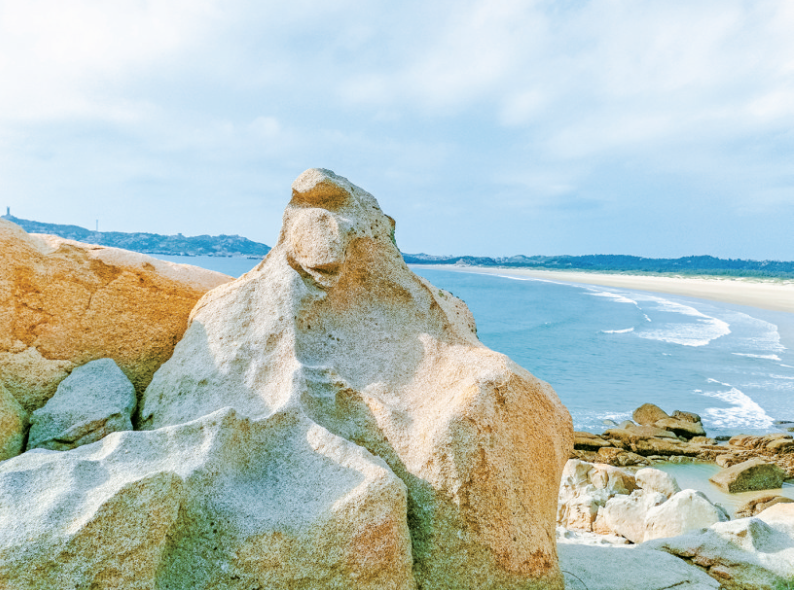 美猴王 申猴·美猴王 地点:坛南湾猴子山岬角(洋中澳与臼仔底澳之间) 这块奇岩被称为“美猴王”,它高三米有余,面朝大海,静立岬角。面部凹陷处,眉眼口鼻浑然天成——那是大自然亲手雕琢的“美猴王”,无须粉墨,已然传神。 可它又不只是猴。村民们笑着叫它“熊大”——那憨态可掬的模样,像极了动画片里那只憨厚的熊。于是,石猴有了新名字,山海间多了份童趣。
