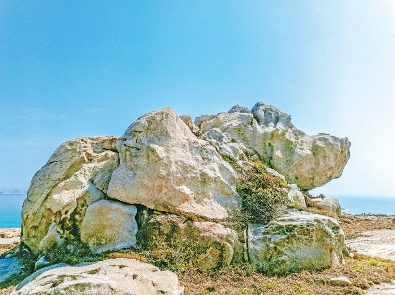 鸡母磹 酉鸡·鸡母磹 地点:金井镇山岐澳海岸鼎山树林中(山岐宫后) “鸡母磹”又名“天鹅孵卵”。这块天然形成的奇石,百年前就已入册留名。1922年版《平潭县志》里,它被郑重记载为“天生圹”。 这块三米余高的奇岩,似一只禽鸟温柔地伏于卵上,守护着尚未破壳的生命。那是母性的姿态,也是山海的柔情。而当你换个角度凝望,它又化作一只憨态可掬的海豹,静坐在林中,等待有缘人的到来。