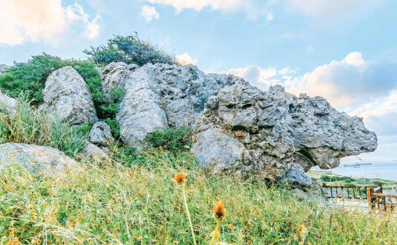 兔妈妈 卯兔·兔妈妈 地点:金井镇建民村渔塘自然村大山顶东坡 山顶处,有一只“兔妈妈”等你来打卡。正面看,它翘着大耳朵,穿着“裙装”,眼、鼻、嘴、手清晰可辨,温柔得让人想上前抱一抱。绕到背后,它瞬间变身——一位戴着大尖帽的神秘人物,肃穆而遥远。 但这还不是全部。站在“兔妈妈”身旁,你正巧站在俯瞰“象鼻湾”的最佳位置!那条沙堤如巨象卧海,蜿蜒伸展,是航拍爱好者私藏的宝藏机位。