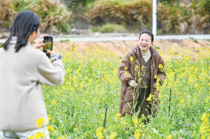 游客在打卡拍照。 漫步东占村油菜花田,原生态的海岛田园风光让人流连忘返。微风拂过,层层花浪轻轻摇曳,与村里古朴石厝相映成趣,勾勒出一幅清新治愈的春日画卷。连日来,这片花海迎来不少市民游客,大家沿着田埂缓步赏景、拍照打卡,乐享美好春光。 “我是第一次看到如此大片的油菜花,即便不是晴天,也显得格外明媚动人。”来自辽宁的游客肖恩称赞道,若是晴天到访,这片花海定会呈现出另一番迷人景致。游客邹淑芬表示,在平潭见到成片盛开的油菜花,让人很惊喜,“这里特别适合踏青,带小朋友来春游、野餐都非常不错。” 据了解,这片油菜花田曾是村里的闲置土地。东占村通过盘活土地资源,因地制宜种植油菜花,既有效利用了耕地、美化了乡村环境,打造出家门口的特色景观,为村庄集聚了人气。 |