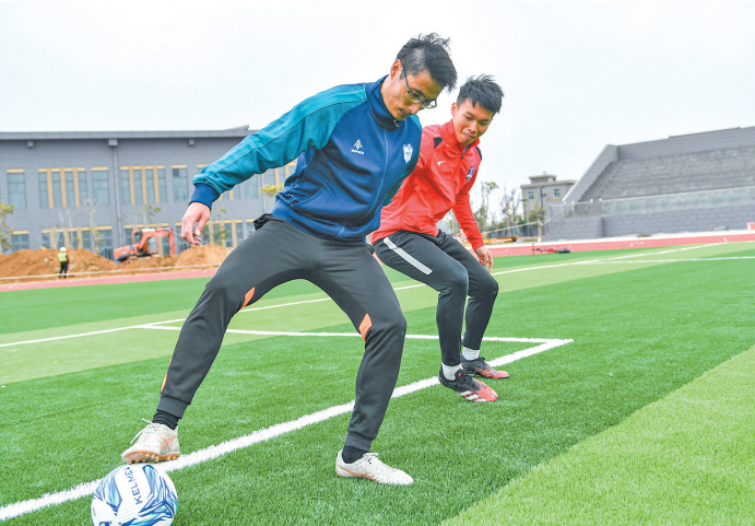 陈国锋(左)和队友进行对抗训练。 “小时候学校里面踢足球的人很多,我就拿个球跟朋友一起玩。”如今,这份源自童年的热爱,是他足球生涯的坚定支撑,更化作了他推广青少年足球的持久动力。 每周,陈国锋都会前往澳前中心小学、流水中心小学等足球特色学校,手把手指导孩子们训练。从基本功到团队配合,他耐心细致地传授着每一个动作要领,用自己的经历点燃更多孩子的足球梦想。 “一方面是想增加小朋友对足球的关注,让更多孩子能够认识到这项运动;另一方面是想选拔好苗子,带他们去外面看一看。”陈国锋说,“我希望通过这次赛事的影响力,带动更多小朋友参与足球这项运动。”在他看来,走进校园不仅是为了教孩子们踢球,更是在孩子们的心中埋下足球的种子。 对于即将到来的比赛,陈国锋满怀期待。 “我希望能争取一个上场的名额,为平潭贡献一份力量。”陈国锋说。 从儿童时期的懵懂向往,到绿茵场上的坚守担当,陈国锋用数十年的光阴,诠释着一名足球人的初心。他既是追梦者,也是筑梦人——在球场上奋力拼搏,在校园里播种希望。这份执着与担当,正是基层足球最需要的养分。 |