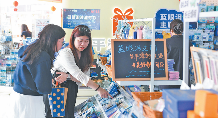 顾客在选购文创产品。江信恒 摄 连日来,在“平潭有礼”公共文创空间龙王头旗舰店内,各类独具特色的文创产品吸引了众多游客驻足挑选。其中,以蓝眼泪等元素为主题的产品尤为抢手。“这几天人流量明显增加,许多产品的销量都有明显提升。冰箱贴和明信片这类小物件尤其受游客欢迎。”店员郑恩骅说。 “我们每到一个地方,都想要买一些当地的文创产品。我觉得这些设计挺有创意,很适合买回去当伴手礼。”来自安徽黄山的游客赖女士说。 位于平潭龙王头海洋公园内的台湾商品展示体验中心也迎来络绎不绝的游客。馆内汇聚了众多闽台好物,从零食、日化用品到文创产品,各类商品琳琅满目,令不少游客驻足流连。 在68海里景区,慕名而来的游客络绎不绝。这里的海蚀地貌与蔚蓝海景,成为许多人的春日必游之地。 在龙王头海洋公园,湛蓝的海水与轻柔的海风交织,为游客营造出一片放松身心的滨海天地。海上快艇等体验项目也吸引了不少年轻人踊跃参与,尽情享受难得的闲暇时光。“这边的海边氛围特别好,我终于看到了心心念念的蓝色大海。我们还专门去追泪,玩得特别开心。”游客杨楠说。 |