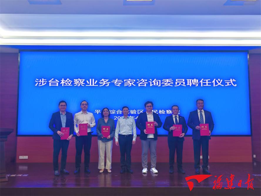东南网4月21日讯(福建日报记者 刘宇捷)4月20日,平潭综合实验区人民检察院举行涉台检察业务专家咨询委员聘任仪式,为8名法学专家学者颁发聘书,其中台胞专家咨询委员6名。受聘专家将参与涉台检察情况通报、案件公开听证、检察理论与业务研讨等工作,助力提升涉台检察工作专业化、规范化水平。